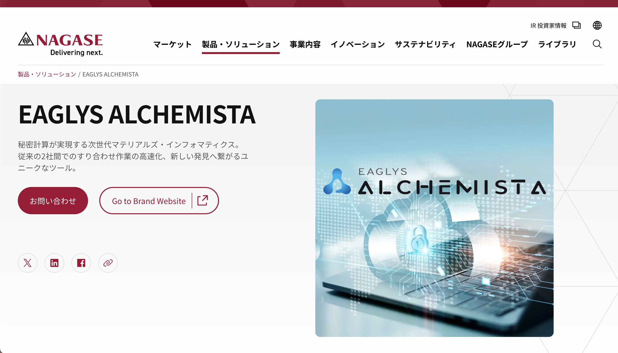 長瀬産業のコーポレートサイトでEAGLYS ALCHEMISTA、EAGLYS ALCHEMISTA Labsのページが公開されました。